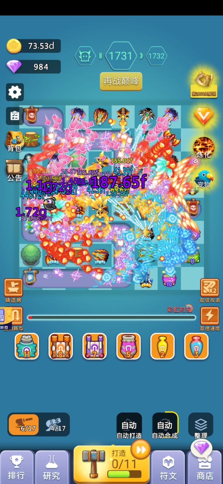 这是一款非常不错的塔防类手游,画风有点像保卫萝卜,玩法要比保卫萝卜丰富一些,首先,建议充个一元,可以解锁自动合成,这样能为我们省不少力气,也节省时间,宗旨就是不断合成合成再合成,同时解锁高级炮塔还会给钻石奖励,钻石可以升级科技。到达一定关卡可以解锁其他炮塔,又是一波钻石奖励,过瘾。前期关卡还是很容易的,不用太费精力,只要经营好,应该不是问题,后期就要考虑炮塔组合了,根据怪物的属性选择不同功能的炮塔,这时就需要玩家有一定的决策判断力,这也是这款游戏吸引人的一个方面。另外,充值很人性化,一元就可以完成首冲,可谓良心游戏,不肝不氪,完全符合大部分玩家对游戏的理解,喜欢。