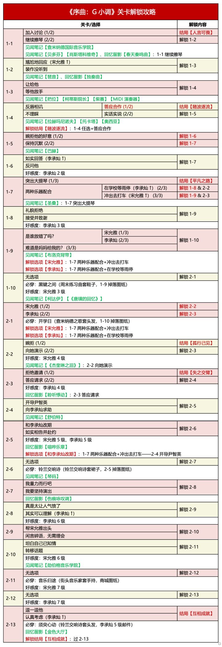 🍀《序曲:G小调》关卡解锁攻略 / 必做 / 见闻 / 留影好感度:李承灿7级、宋允雅7级主要参考【tiragooen】