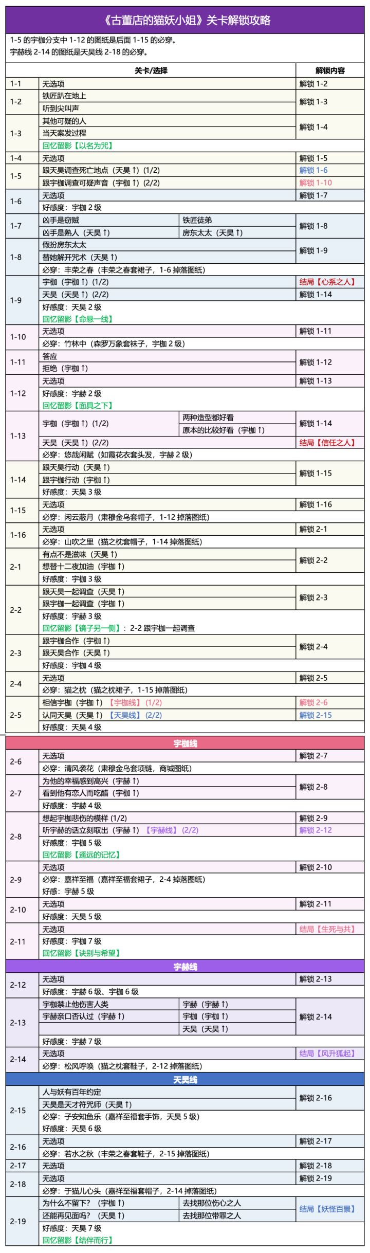 🍀《古董店的猫妖小姐》关卡解锁攻略 / 必做 / 留影好感度:宇枷7级(五星信物)、天昊7级、宇赫7级主要参考【tiragooen】