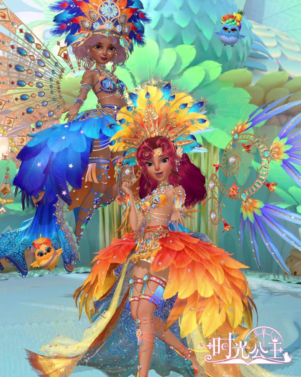 「莫莫王时刻」 内心野性的火焰融化后,蜕变成了金色的羽毛,在旅人的手臂上挥舞着它的身姿。 「踢踏狂欢」 有些鸟儿的鸣叫属于广阔的天空而非牢笼,因为它们的羽毛太过丰润,宛如宝石。 声入鹉心服饰【莫莫王时刻】、【踢踏狂欢】将于2023年2月17日上线,旅人们敬请期待!