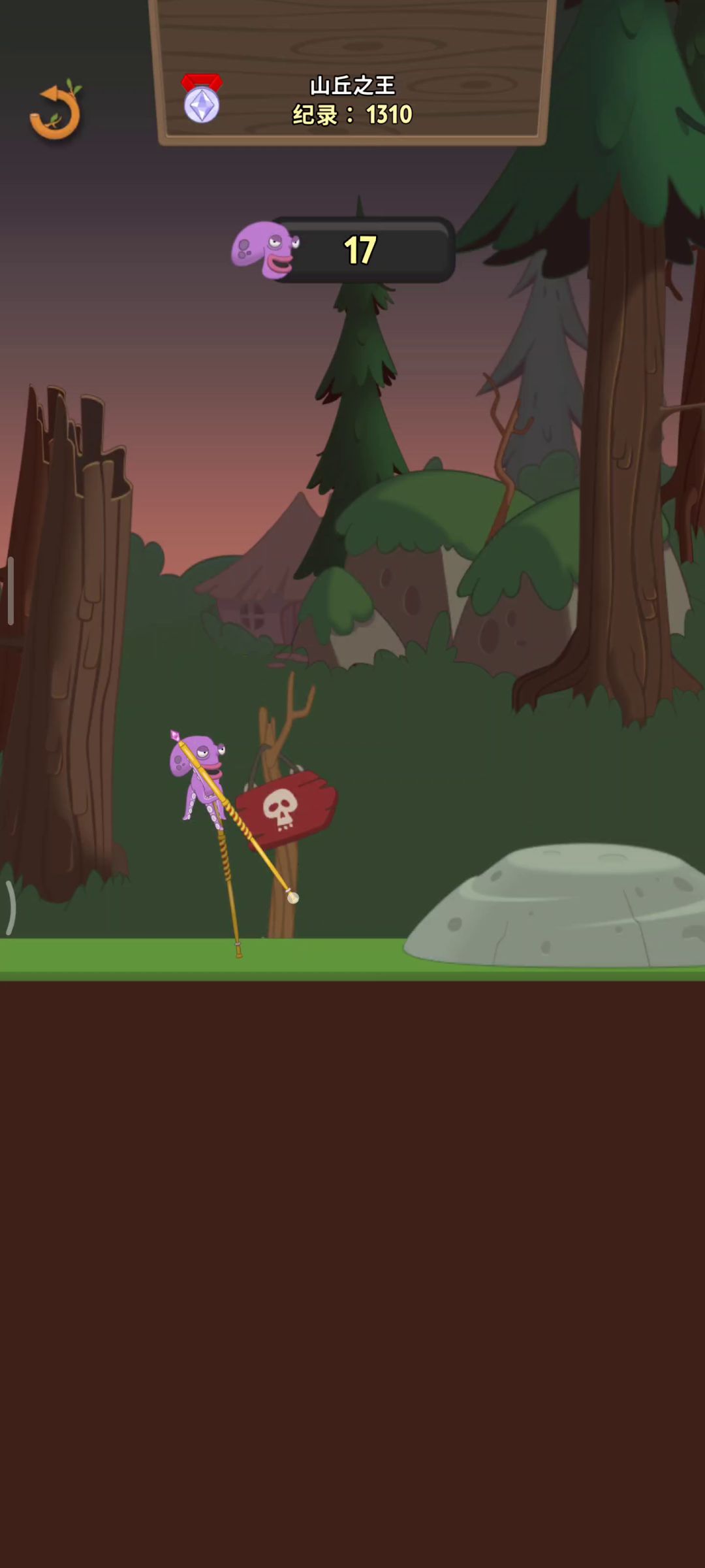 这里不仅是依靠石头的高度,也利用石头回滚向上转那侧的速度,起到一个弹弓的效果