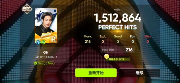 本命r卡一张都没有中,这张xr卡是我用s卡直接升上来的。真的有点坑....而且在玩的时候,会有小小延迟,导致会有Miss ,然后就没了perfect hit,就会有点生气.