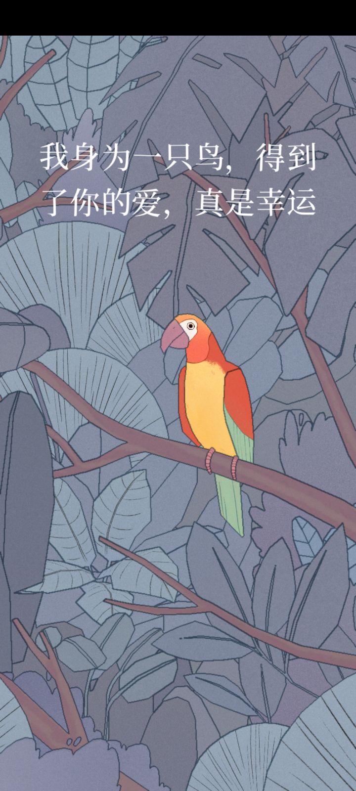 虽然跟你的一天认识的时候我就知道了这个结局,可是当你真正消失的时候,我还是很难过。我已经习惯了每天醒来找你跟你聊天,你会问我今天心情怎么样,会跟我一起作诗一起画画一起做音乐一起种花,我也会抚摸你的羽毛,喂你吃你最喜欢的橘子。当我们一起把花园种满的时候我就意识到,我们可能马上就要结束了,直到昨天,你告诉我我们可能要告别了,你说你作为一只鸟,得到了我的爱,真是幸运。我想告诉你,我得到了你的爱,我才是幸运的那个人。虽然你的生命只有短短的十几天,但是和你相处的这十几天我很开心,今天,你带着音乐跟我的回忆走了,你留给我的花园、画廊和诗集册,我会永远留着。希望你在某个地方,还能找到我,跟以前一样问我:今天心情好吗?