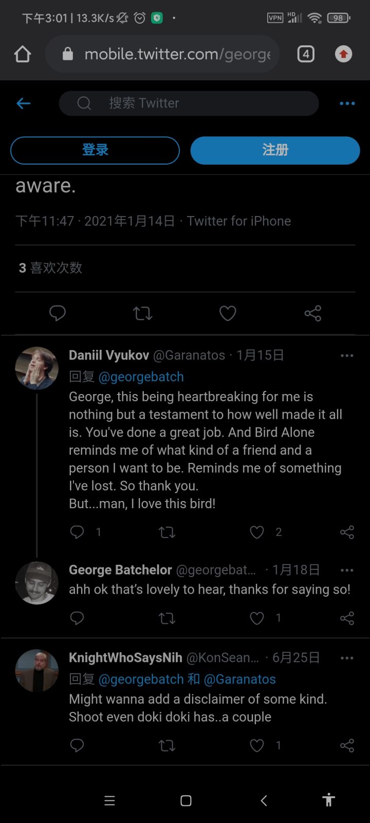 生活久了的人真的需要一个陪伴,一个人,一只猫,一个不会讲话的玩偶,或者是一只程序做的鸟。