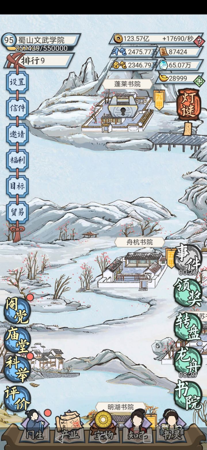 马上就要通关了,不知道还能干啥?阉党搬到无所谓了,72%也失败,30%也能成功,官是不升的,只有降低的,钱不缺了,名气才气早就超标了,目前就在第九名了,没想法了,等最后一个蓬莱打开了就卸载了