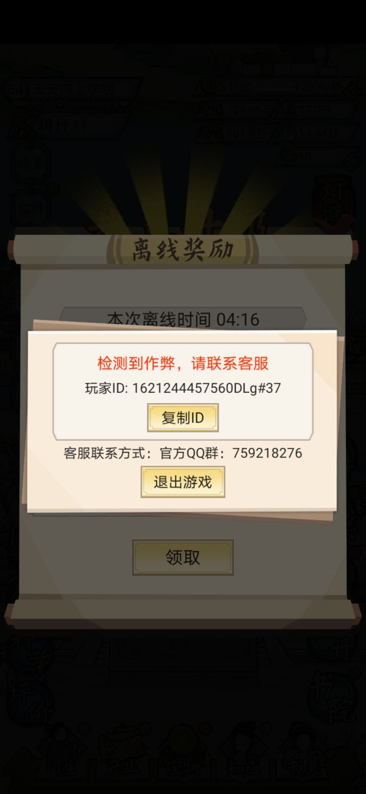 突然就检测作弊,我就不懂了一个这个游戏能做啥弊,加群也显示搜不到这个群