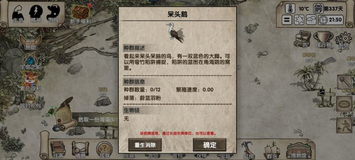 #单机游戏 一个人的荒岛时光进入游戏→选择角色(只有一个免费滴!要是免费角色有个女主就好)平平无奇的吉姆.赛特背景-他有个热爱探险的哥哥,多年后,他也追逐这份血脉的好奇踏上旅程……咳咳咳不编了,大伙自个看哈~首先【新手指南】(哥哥的笔记!!!)不展开了哈😠〈左上角〉【生命】【精神】【饱食】😠〈右上角〉【温度】【日期】【季节】【天