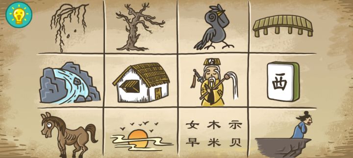 1.桃花源记点渔夫,在山上金鸡独立的时候,向右划一下渔夫(推一下渔夫)2.妃子笑左边侍女的眼睛,点2次,变成wifi3.四大才子多点几次桌上的香4.负荆请罪点廉颇背上的吉他,多点几次,直到出现荆条5.聊斋志异向左拖书生的嘴,变成豌豆射手6.按图索骥枯藤,老树,昏鸦,小桥,流水,人家(房子),古道(道士),西风(麻将:西),瘦马,夕阳,断肠(女木示早米贝),人在天涯7.黛玉葬