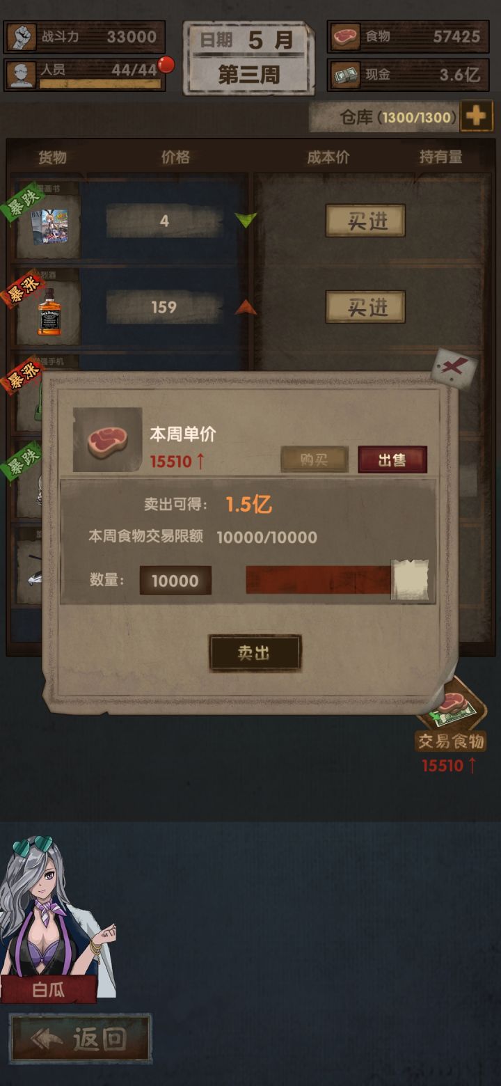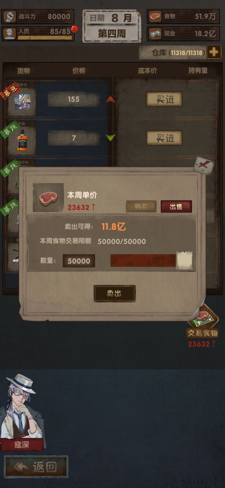 上个版本就玩到现在基本都是随便过不说了上图一,按照我的思路就是一直买食物来升级农村来曾人口侦探搜人口加上自己买人口二。一直按照路线打工买食物每周都买,买到最后就是便宜的一笔0。几的价格,一直买一直便宜