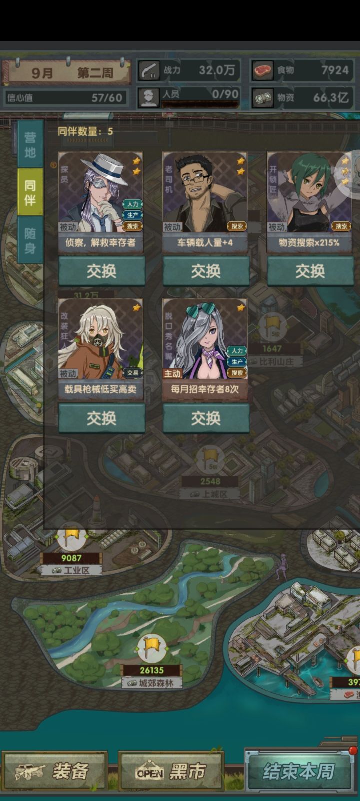 这是我今天打的一个多小时的一把,感觉带脱口秀加烟鬼加开锁匠加阿宅加食品大亨前期暴力开图用脱口秀加人口然后一月底红月后拿到烟鬼,再后面点开锁匠,一般四月底就能开完,然后拿到阿宅白嫖劳动力把占的图都可以安排两人工作量流水线。后面优先点开锁匠到四星,然后脱口秀,人口核心也要点,后边再点食品大亨加食品交易上限打食品差价和升粮食产区得人口基本六月就能买5.9亿的物资车开始爆资源了,当然一路上黑市还是不能丢,我这把大概开了三万多单位的仓库只除了最后两个区没有升到五级以上,基本无敌好吧,这是我感觉新手最好的搭配上手套路。(才玩三天,个人感觉比黑市流好,这个就是叠人口的探索流)这把运气不太好,脱口秀和大亨都没能点到三星,人口少了很多,不然还能多些数值。