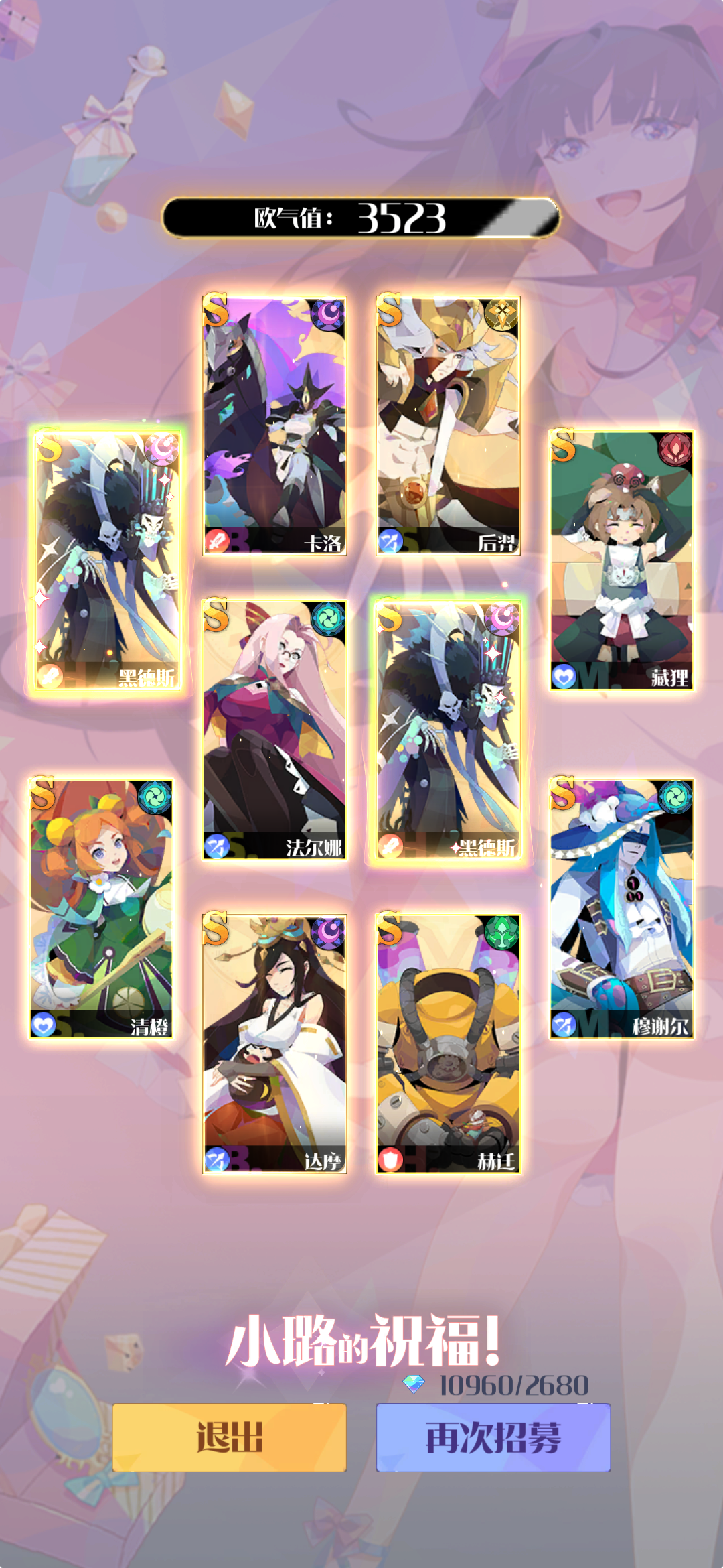 前期那个角色星高就用那3个角色最好配一个前排肉盾,游戏白嫖7天大概也能送600抽以上,Ss2星每个角色解锁所有主动和被动技能,这时候主力3人队伍就可以搭配了推荐几个