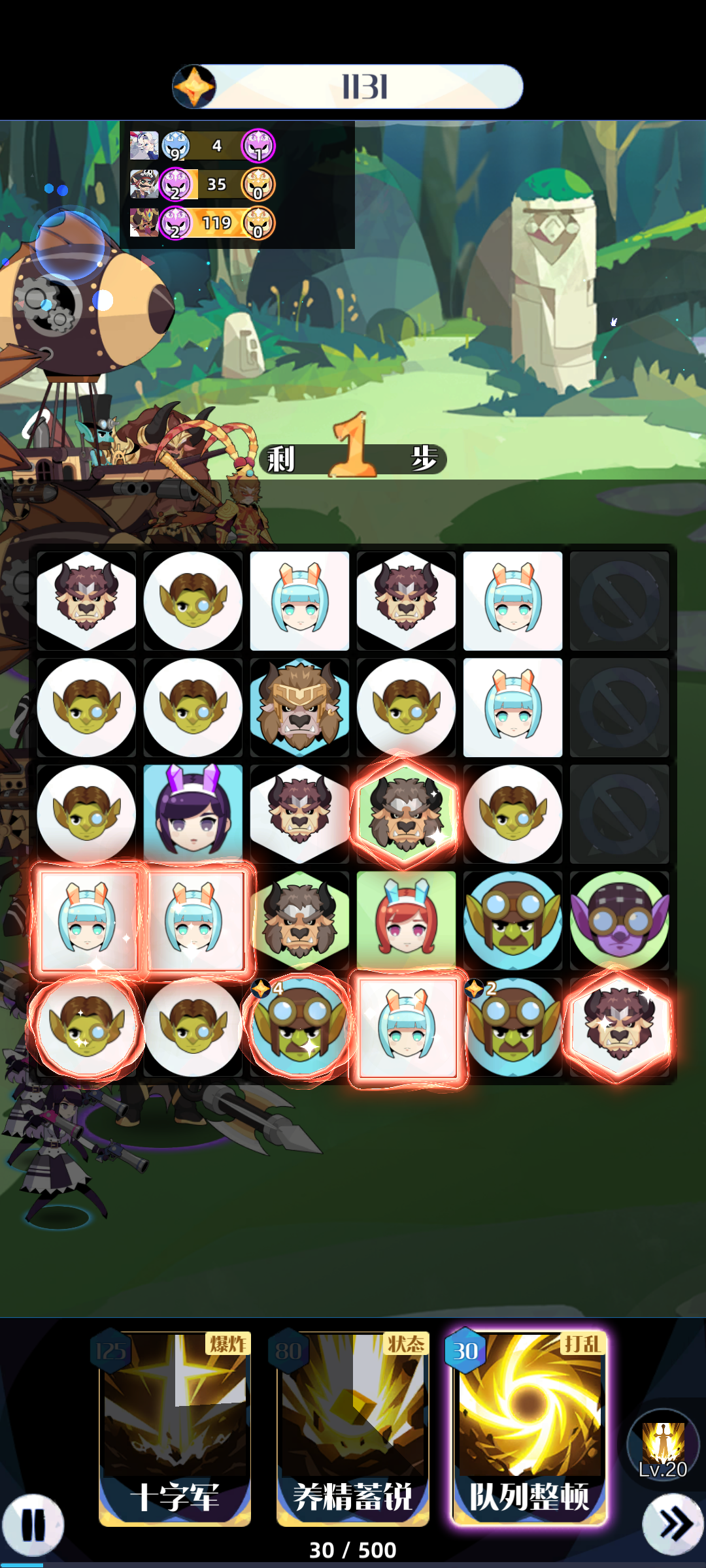 这关卡了我一个上午,终于解决了。首先我们需要一个神器套装,祭杖,恋袍和愚帽然后拉到3星,这样我们就有3层圣盾了然后阵容是一狸两射,因为这关肉没啥意义爆输出即可。14w战力试了两三次就过了