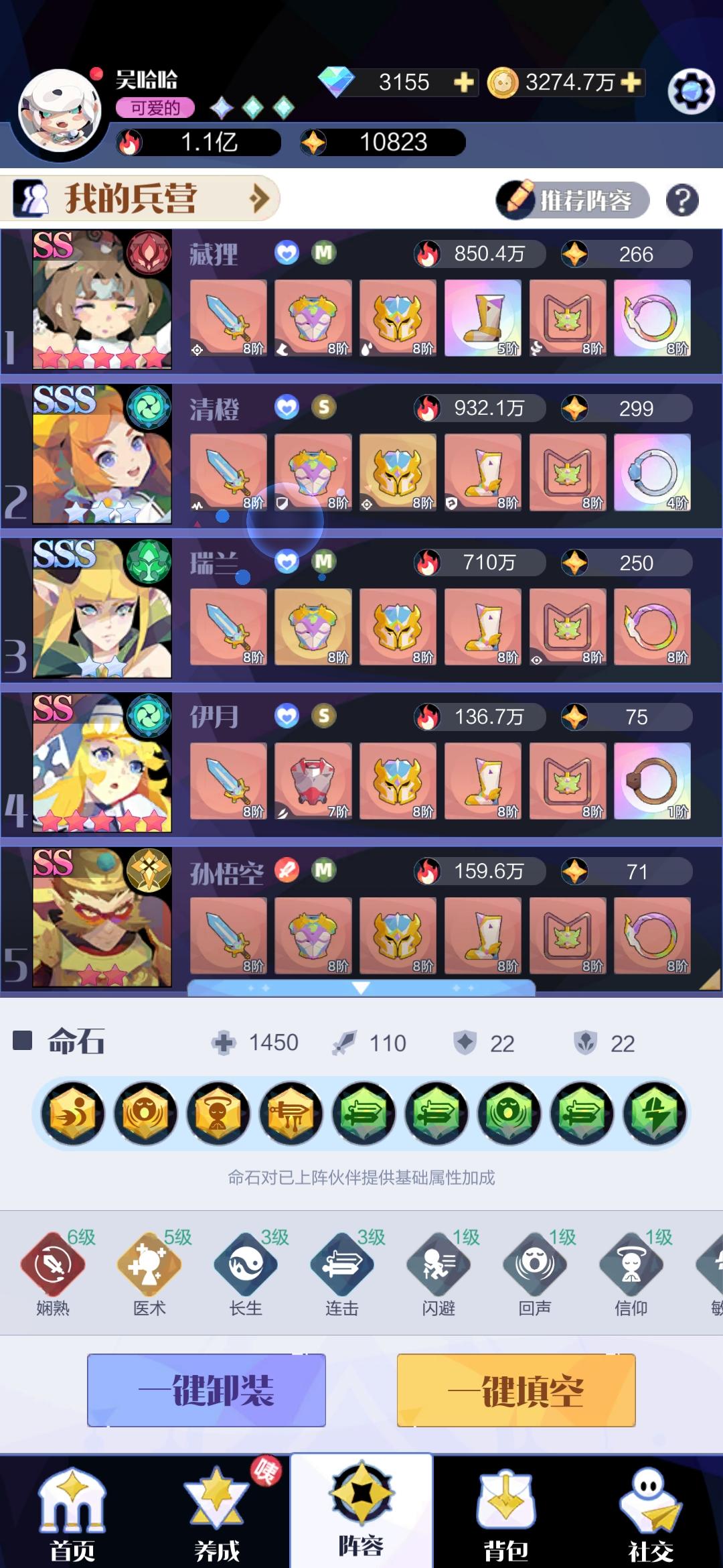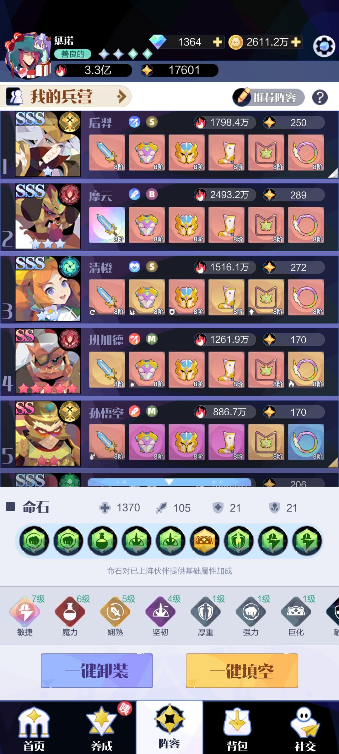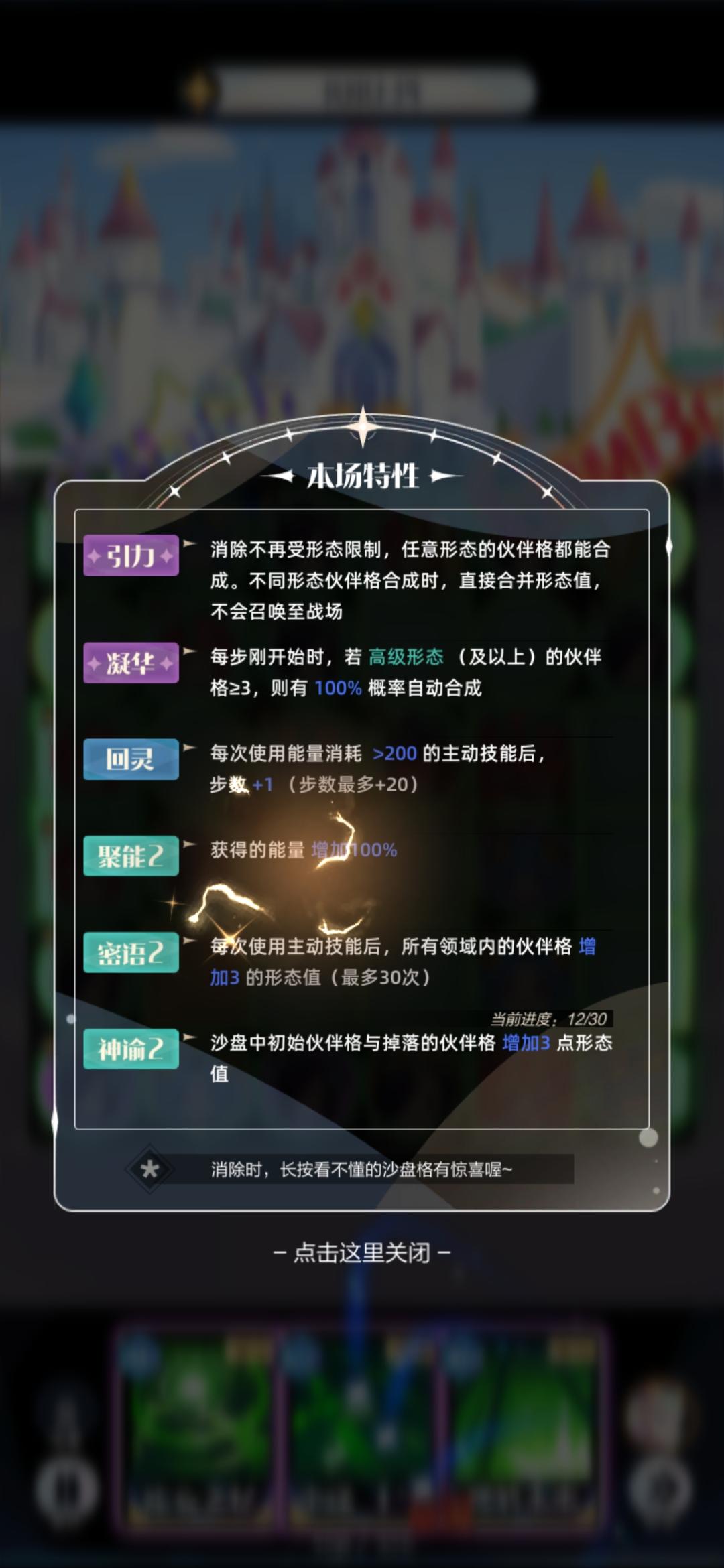 第一章~第十一章列表推荐品质增加到SS星级+4(全伙伴SS2~5星)可以低于首领岛3~10万打过攒紫色、橙色、红色品质伙伴格直接拖拽到场上限制4步以内的关卡合成蓝色伙伴拖拽到场上能量充足时使用大范围召唤技能召唤大量高品质伙伴使用领域+状态值技能增加高品质伙伴格的状态值召唤到场上填充左上方状态值进度条增加额外高品质伙伴—————『分界线』—————PS:使用技能不