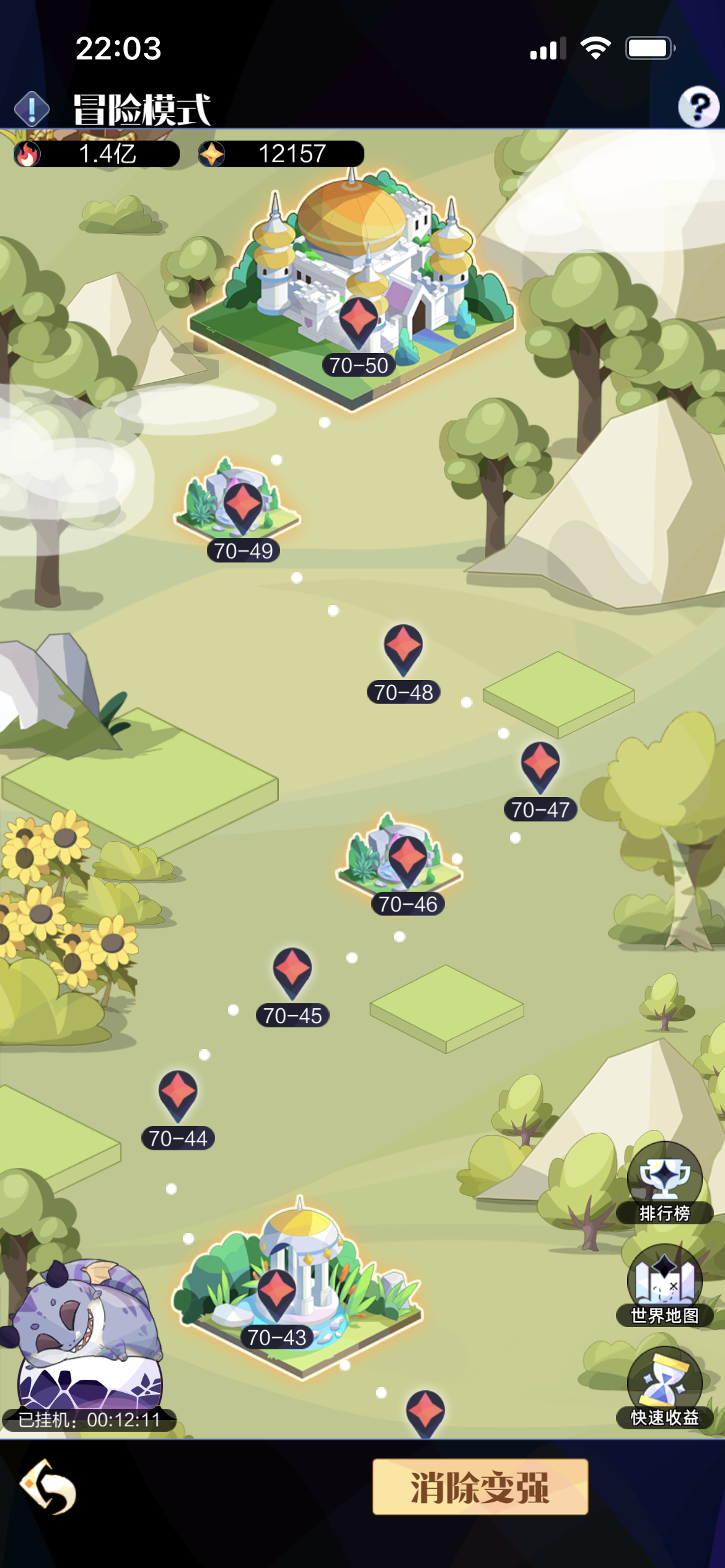 这个石头副本的石头是可以用消耗蓝色及以上颜色的棋子点掉的,蓝色的点一下消减1层。对于卡住的一些石头就可以用这个办法清了,至于最后的那块几十层的大石头,用紫色的点一次可以消掉5层,所以在大石头没出之前尽量多屯紫色棋子,最后一波直接用棋子通关就行,我现在是难度四,大概打五到六波怪就可以通关一次,还是挺省时间的,相比较蝙蝠副本来说