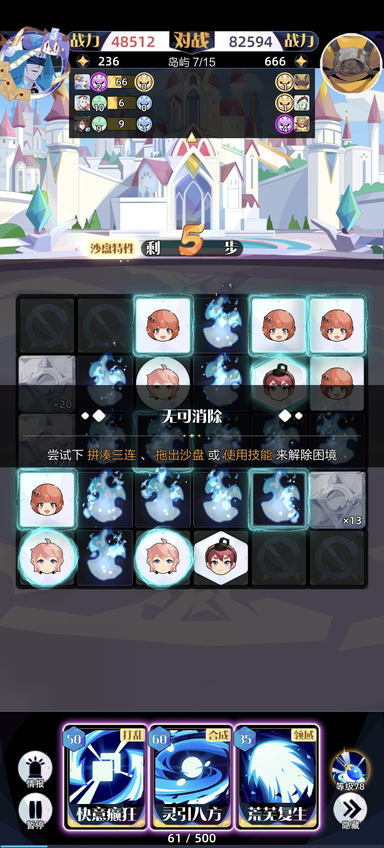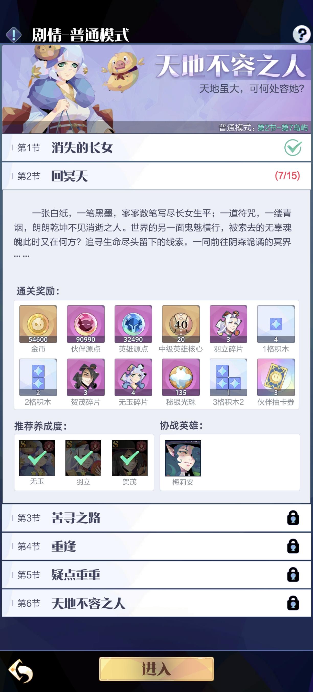 ,三个角色没到2s2(双s二星)的话难度是很大的,从第一关开始就一定要连消或者双消,技能不要有能量就用(这是重点!),只有当陷阱比较多的时候,或者你已经看不见下一步连消和双消怎么消的时候再用,前八关是要累计战力的,到第九关之前你的战力要至少45万,只要达成这个战力目标剩下的就是无限凹第九关了,只要过了的话后面不会有很大的难度(但是也不能太过松懈,也要尽量连消双消)。