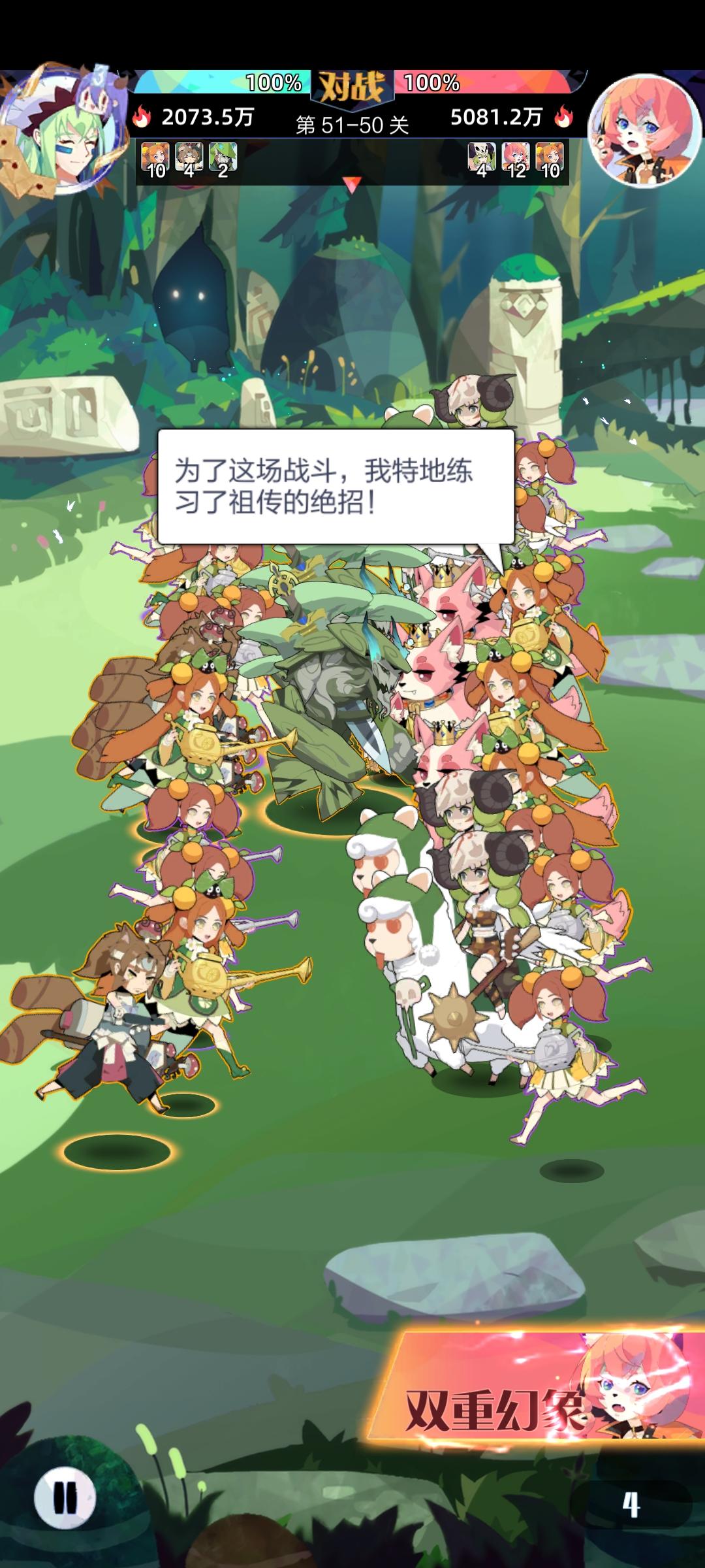 最拉的51-50通关 话不多说直接上图按照大佬说的 娴熟四人组和长生小组挂在4-9号位 过了