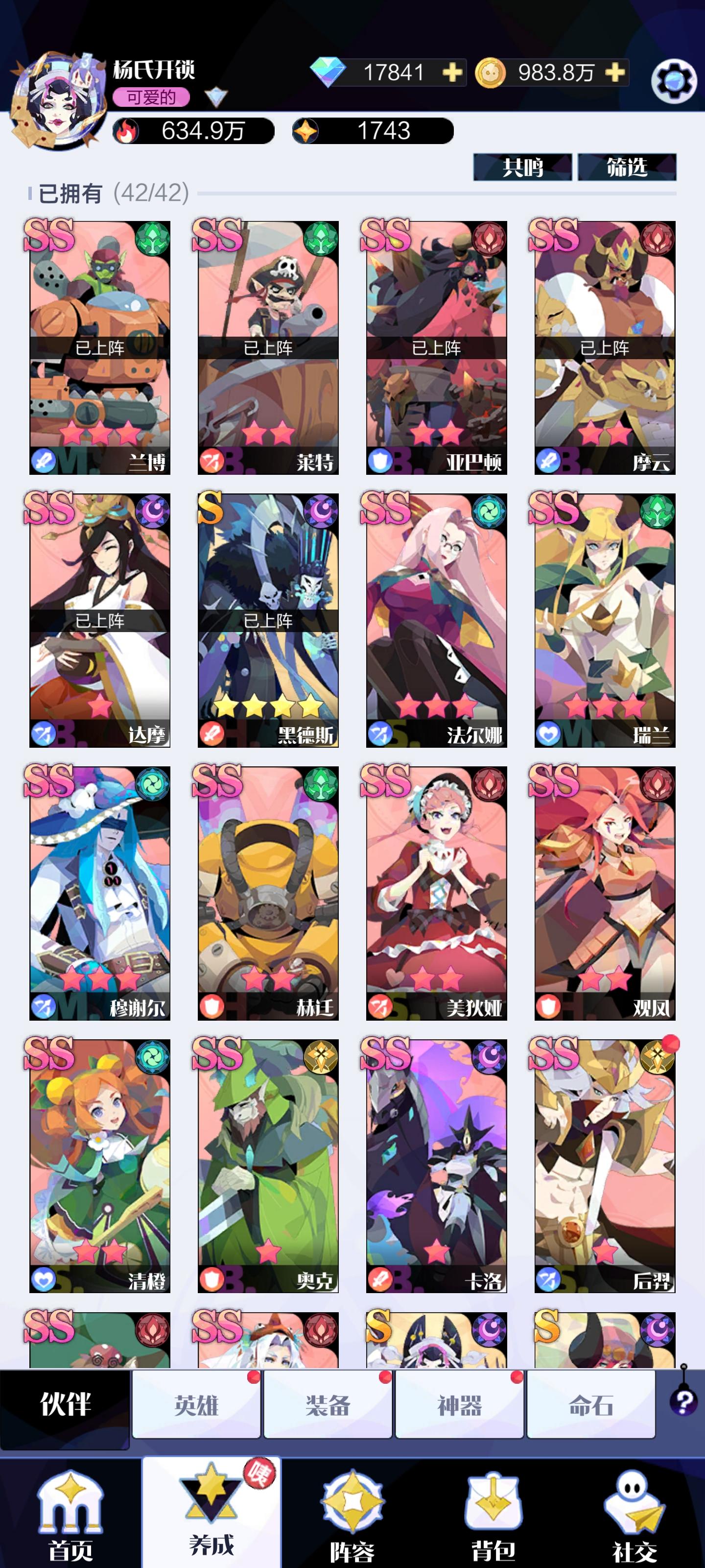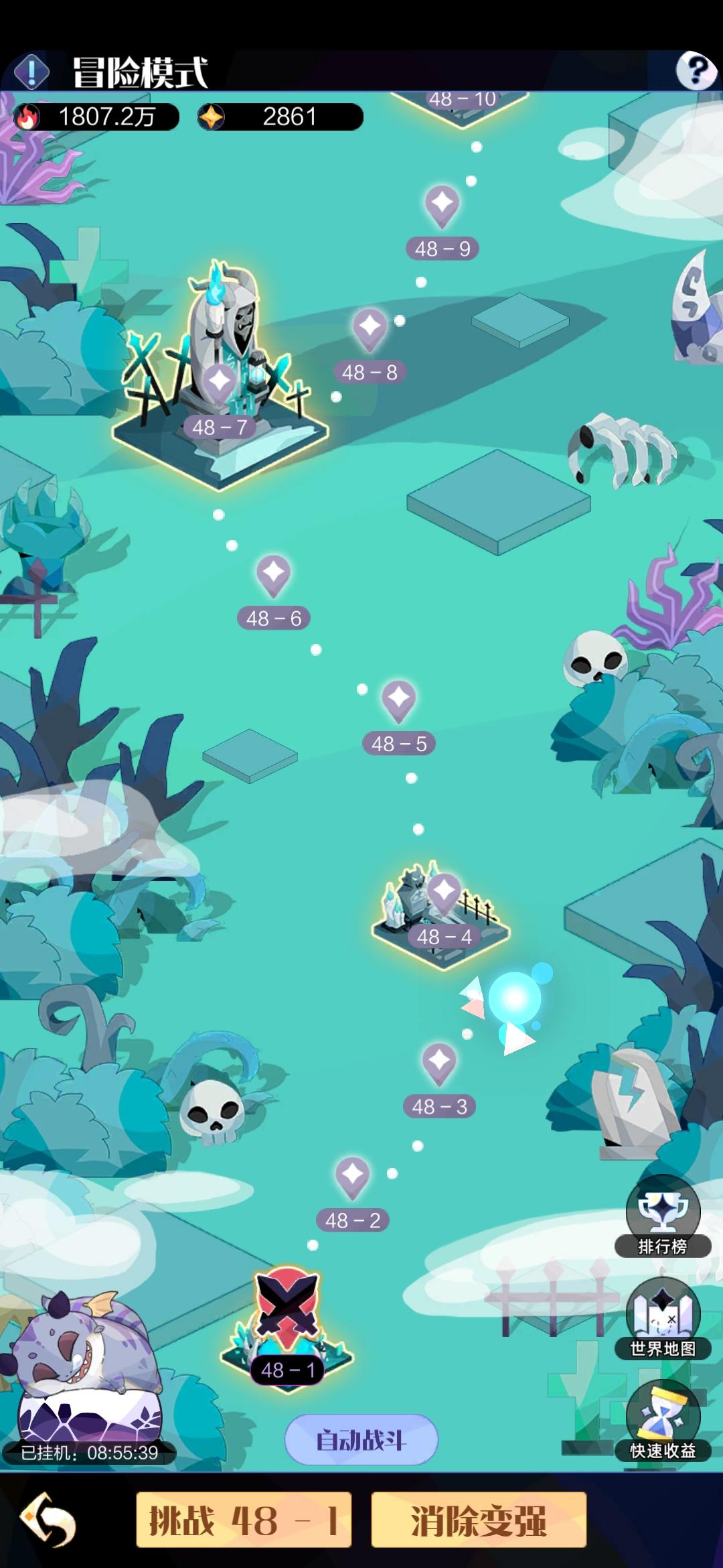 47-50过关思路之前看论坛,极限赫仟比较能顶,就用梅在消除除中把赫迁合成红色。11的盘勉强能搞,需要献祭2次都出赫迁,2次与共把3只怪凑一起,灵引八方把3只怪合成一个大赫迁。然后我的战力从3000w降到1800w。但是47-50能过。😂
