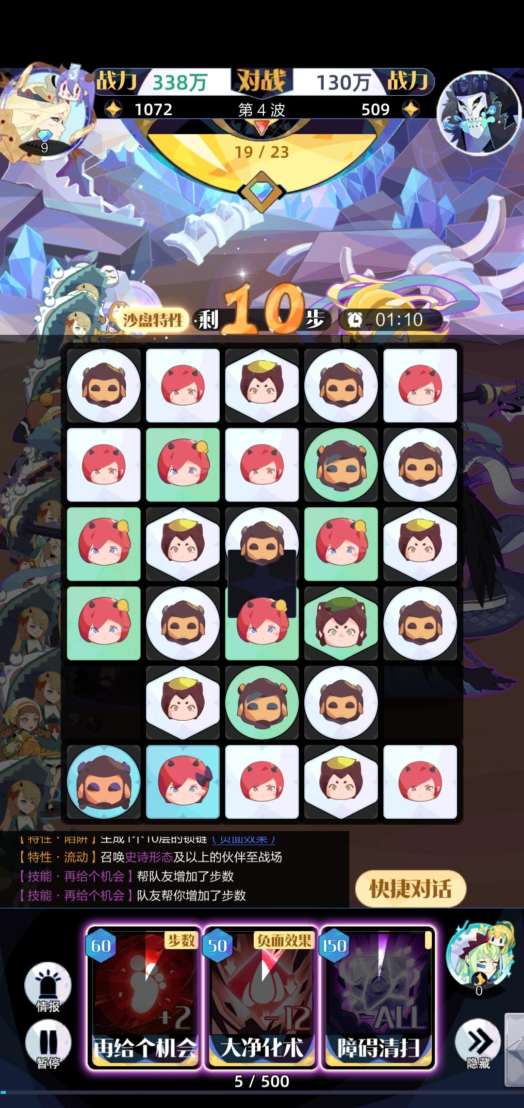 游戏ID:4179396合作挑战回合结束还有步数下回合开始会卡死,无法再操作