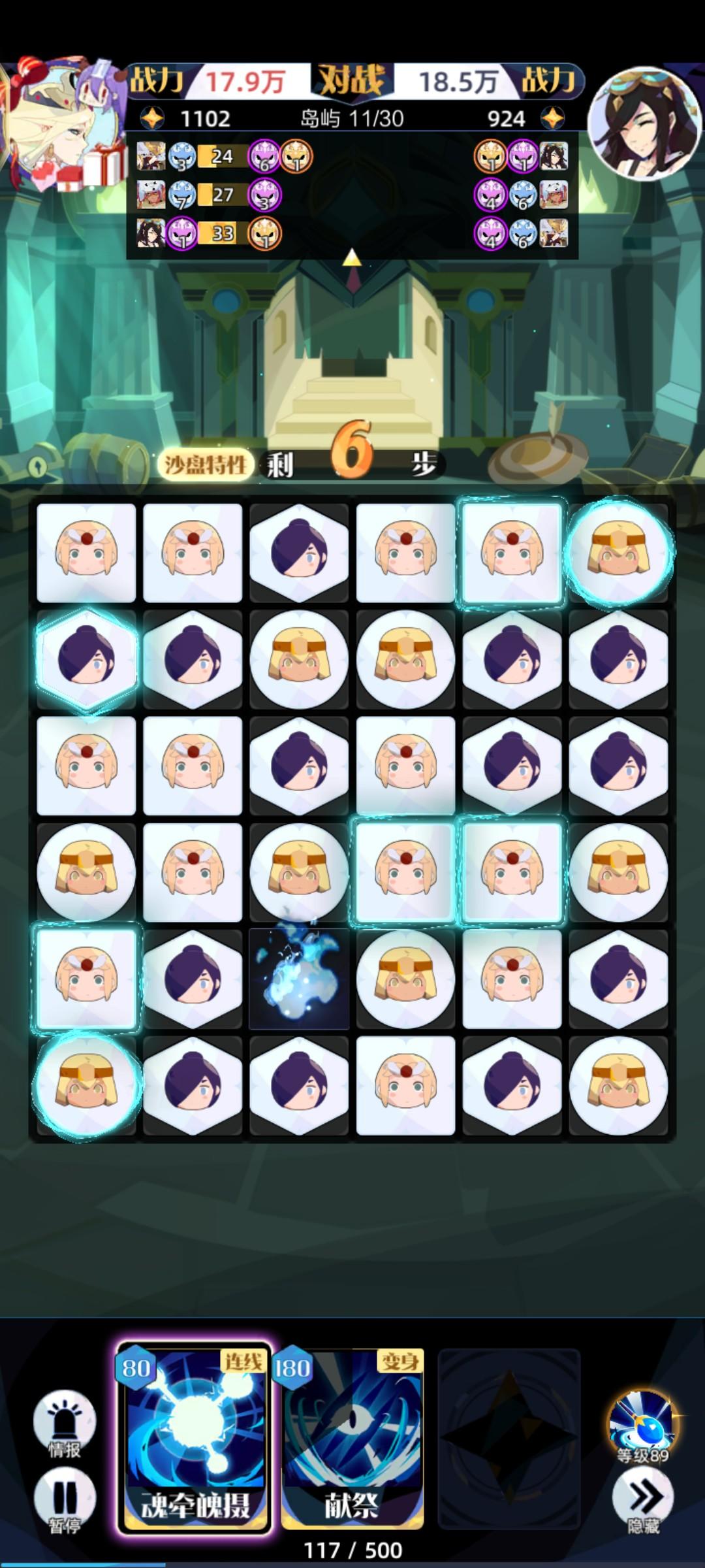 萌新以为副本的角色都是固定⭐级的,然后就没去升⭕里的角色⭐级,然后就以A级莽打(打了一天半还以为关卡太难了,虽然雀氏难)。卡关的一天时仔细研究消除获得能量最大化,然后……用A级打到(13/15)17w战力时彻底卡死,各种尝试都失败。后面只能重置开始研究每一小关的能量最大效益,也研究出来了,(6/15)的时候是接近9w战力,出结算界面时发现角色星级是A,后面才发现不对劲。。。把这三拉满后战力飙