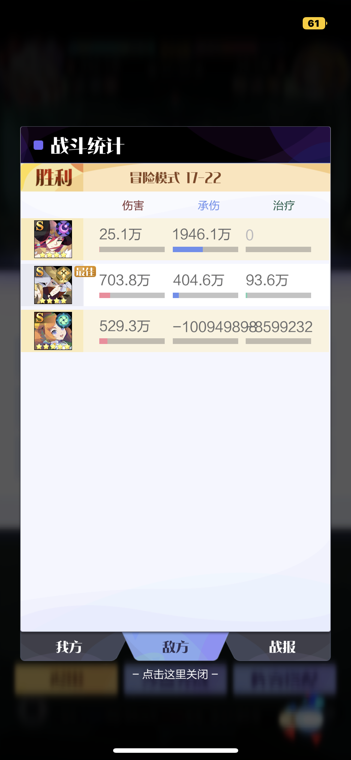 更新完以后,这一关卡,在我还有4步的时候强行进入战斗,我把三个英雄都用了一遍,最后发现一样就截图了。
