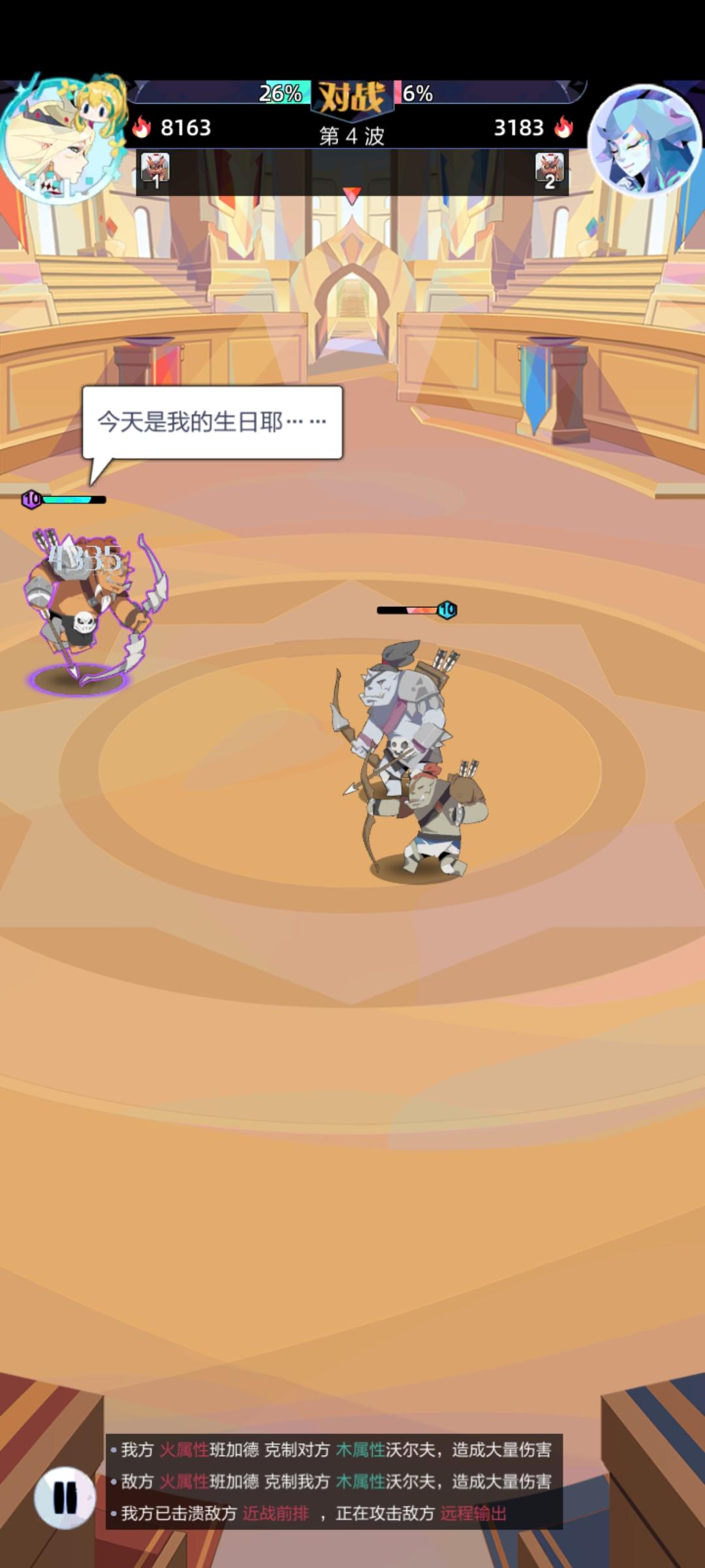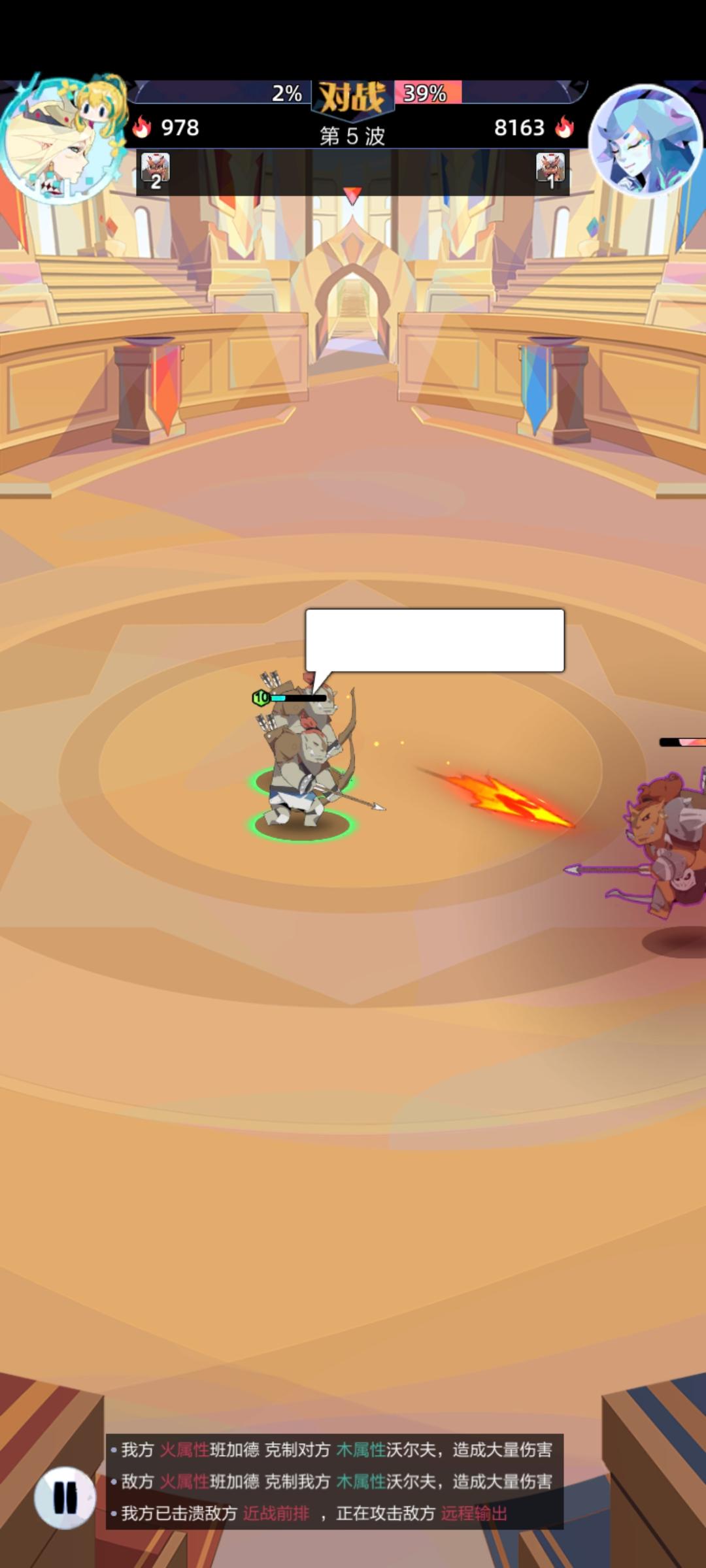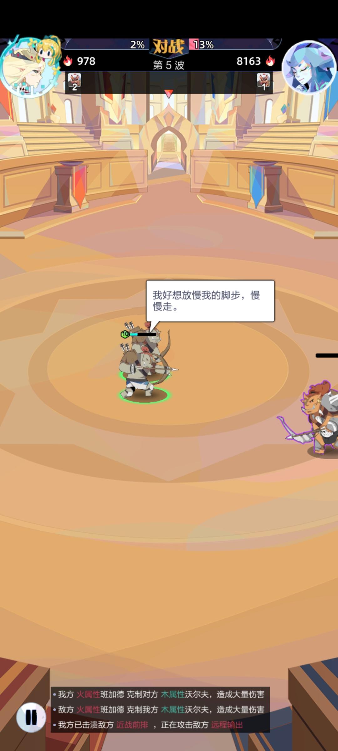 不知道是不是bug,紫色怪不攻击了,倒数第二回合我不打对面,哈哈,然后最后一回合对面不打我😂😂