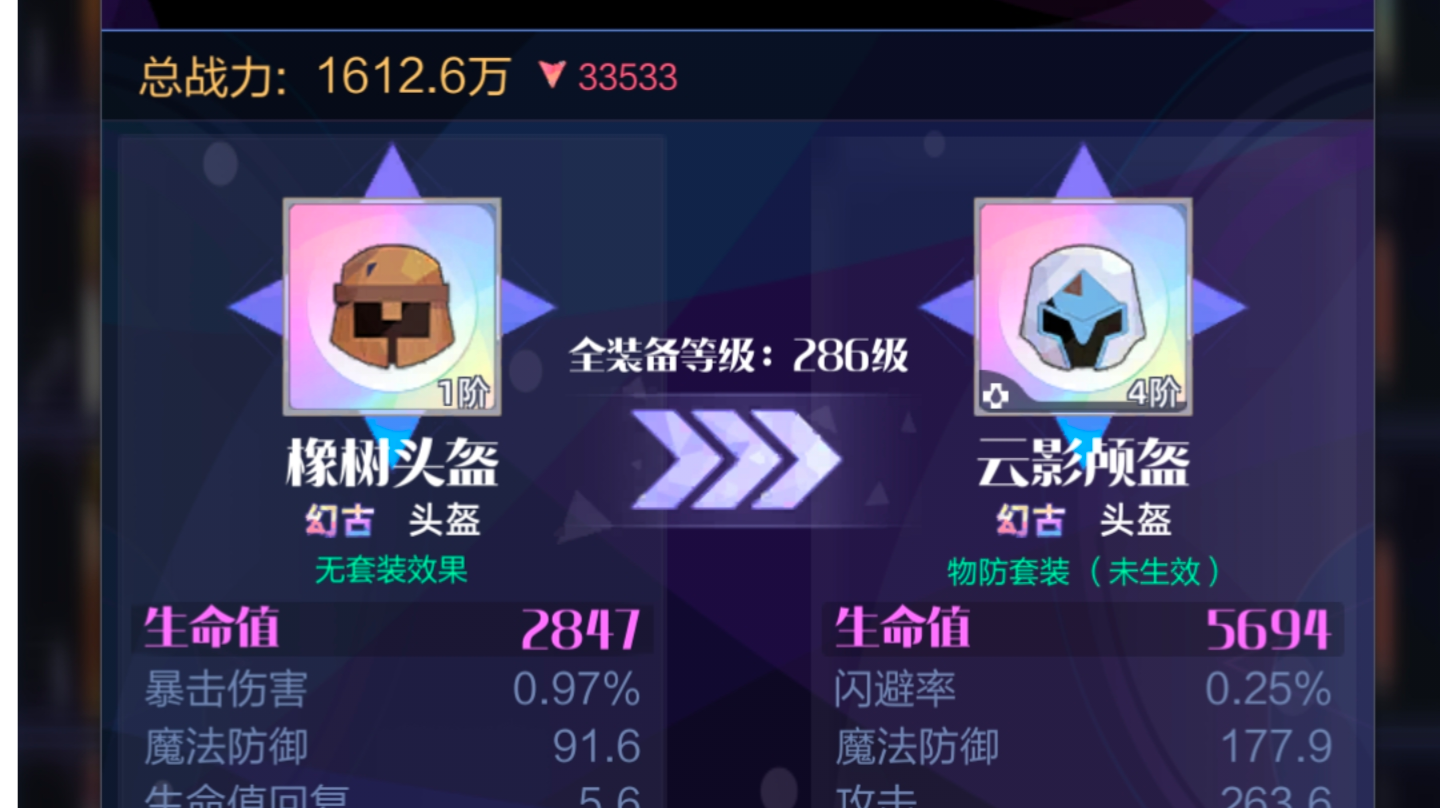 装备战力是啥情况。。。4阶装备明显属性比1阶装备高很多为啥战力还下降一大截。。。