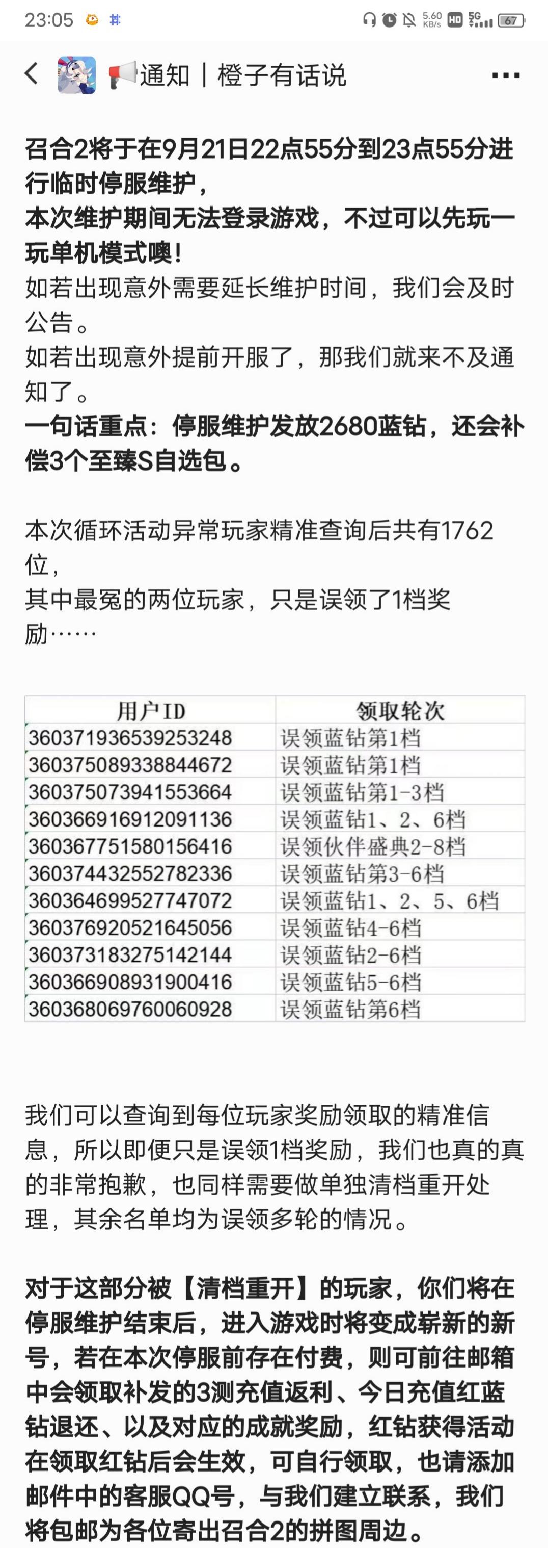 什么叫误领,就是说你看见可以领的领了就叫误领?不觉得很让人人心惶惶吗,说不定以后哪天多点一下就叫误领了还有第一天就搞这一出,很砸招牌,第一天回档损失还不算大,无非就是几个小时生命,以后呢,无意间误领了也要清档吗,忘团队以后注意。自己1代建的招牌不要第一天就砸烂了,那么多人,包括我,都是648往里充,认了情怀的账,别让玩家心寒,而且我自己也不知道误领没,麻了,等会吧0:57维修结束,有没有卡,误领没自己有个数,还有楼主号没问题,不要觉得发这个帖子是卡了bug然后抱怨,不建议脑补然后找优越