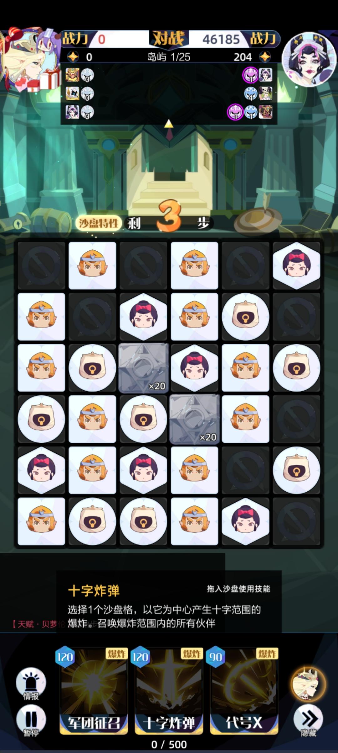 剧情最后一章第一关就离谱,开局就3步,对面46000战力,双消才能加步数(不是连消),就离谱