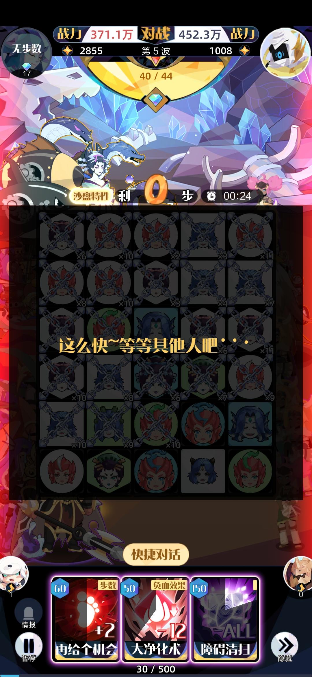 召合2是一款还不错的游戏,可是这个游戏的定位却一点也不明确。消除游戏本身的卖点应该是简单明快的,可是召合2却有着臃肿的养成系统。单单是我玩到的就有沙盘合并,升星,升级,武器,武器升级,这些放到传统游戏里没什么毛病,可是召合系列的定位就和普通游戏不一样,这样复杂的系统只会遮掩召合2的优势。当然,我并不是说召合2不应该有这么多系统,而是最开始应该只保留沙盘系统,等玩家摸到了沙盘的上限,再开启等级系统,以此类推,尽量做到简明快。