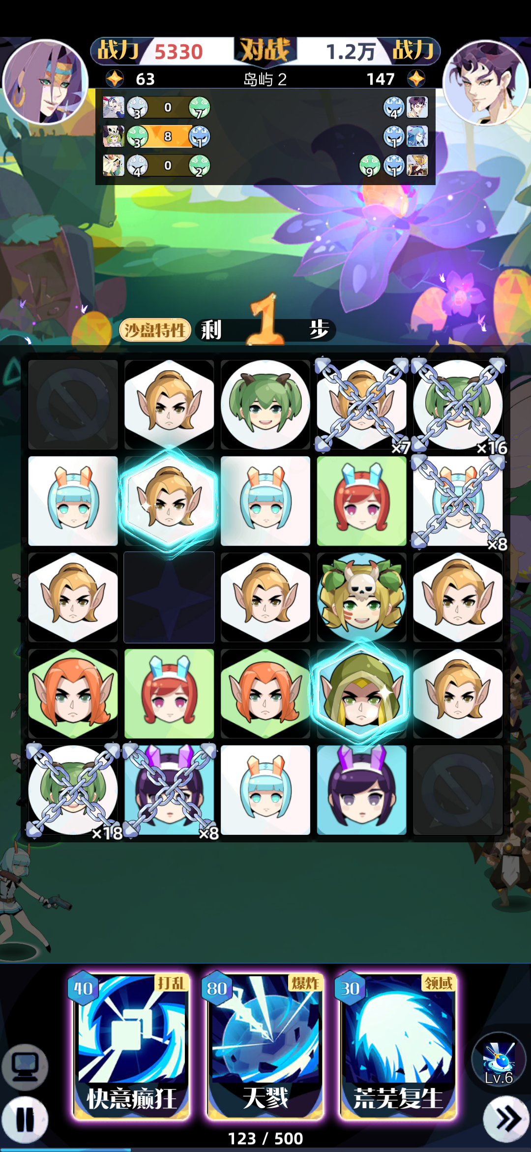 影响我们能否通关的要素,主要有以下几个1是人物属性2是职业3是元素关系4是体型5是技能首先属性取决于你的抽卡格子强化装备神器消除能力等,这里就不说了,无脑抽卡强化就能变强。所以当我们用某一套阵容突然卡关了,我们要做的就是根据敌人调整职业元素和体型。举个例子吧比如我卡在这一关了我的阵容原本是这样的根据对面物魔2弓1物盾,我选了我自己进化程度相对高的2物剑1魔弓,最后战斗力虽然少