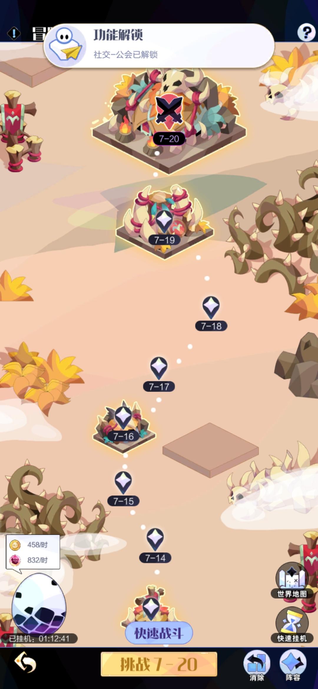 假如卡关,需要把沙盘升级了,然后把那个冒险打到3–15,使劲抽,就有了,沙盘升到第三级需要物品需要打到8-19。打到3-15需要至少一个紫