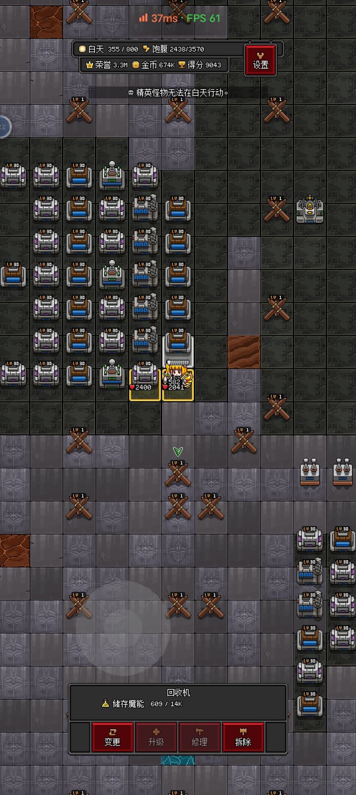 虚空石无法购买,需求极大。 配合点击Q,可全自动GJ,模块可无缝拼接。 (单组的情况下无积矿) 即便矿物积满,依然可以消耗魔能。满功率工作。 前线布局全电塔消耗魔能。 截图看布局注释