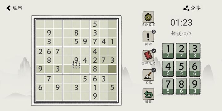 在满笔记情况下,如果出现填写错误仍然会按错误选项消除该行列的可选笔记,希望可以优化一下方便游玩,填笔记真的很痛苦😭