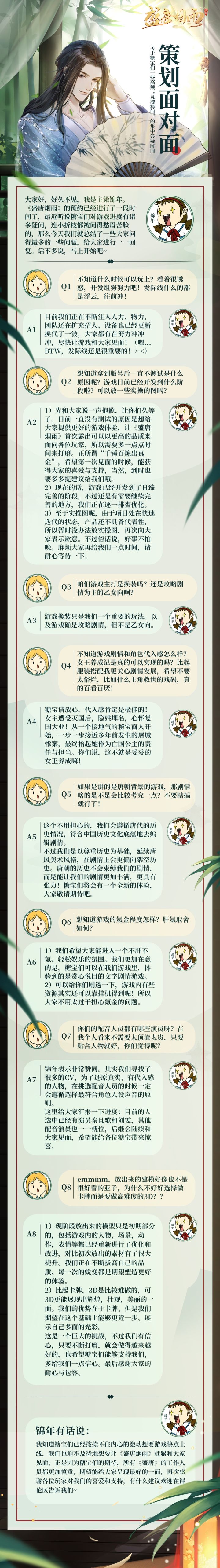 hi~糖宝们周末好,我是锦年——每天在脑暴和掉发中思考人生的狮子座主策。近期我们常常会收到一些来自糖宝们的不解和疑问:为什么我们的研发团队下重金制作3D游戏?毕竟制作一款3D的女性向游戏,花费的精力和成本非常之高,且做不好老公们的建模还要被吐槽(;′⌒`)......今天锦年就通过“盛唐梦小剧场 ”,希望来和大家分享一些游戏的立项背景~【盛唐梦小剧场】第二话:==============