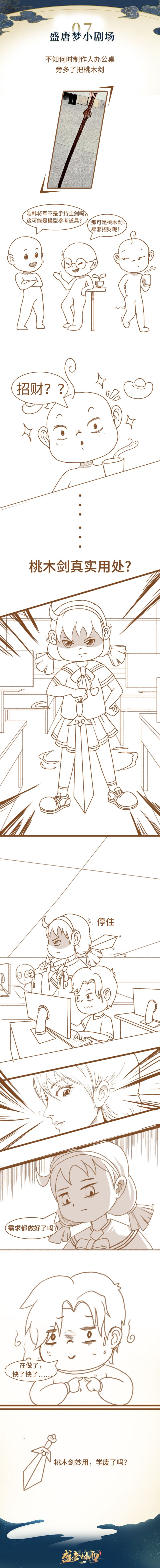 糖宝们好呀!小管家折枝带着【盛唐梦小剧场】来啦~~请大家备好瓜子,找好座位,咱们的小剧场马上就来!话说辛丑年间,盛唐烟雨项目组制作人的办公桌旁,出现了一把桃木剑。此剑成色佳,重量足,可谓一把好剑。这可就引人好奇了?这把剑为何出现,又有何用处呢?锵锵锵,请看大屏幕↓ ↓ ↓看完本期小剧场,糖宝们学会桃木剑妙用了吗?✿❀✿❀✿❀✿❀ 研发真人出镜分割线 ✿❀✿❀✿❀✿❀9月下旬“花里逢