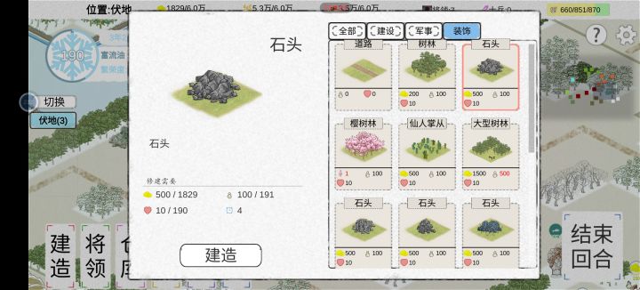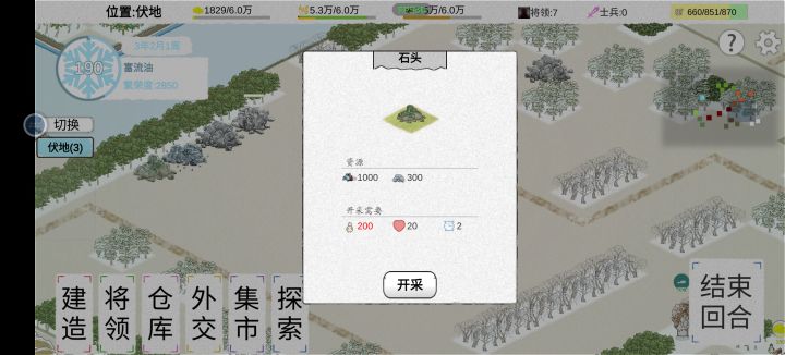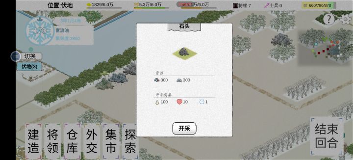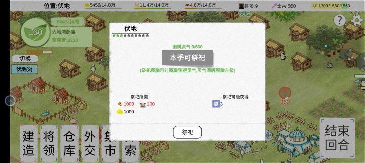 简简单单的做一下攻略吧 新剧本先建帐篷,结束后立马招募一下。基本有50+的人。然后修一个土地,等人口每回合增长的时候可以砍砍树砸石头,第一次土地收获后差不多人就满了,刚好修一个仓库。接着就把木屋和市场修起来。基本上前期准备工作就完成了。剩下的就可以慢慢来,第一年基本不用管外交方面。前4个月基本可以把基础建设弄好。