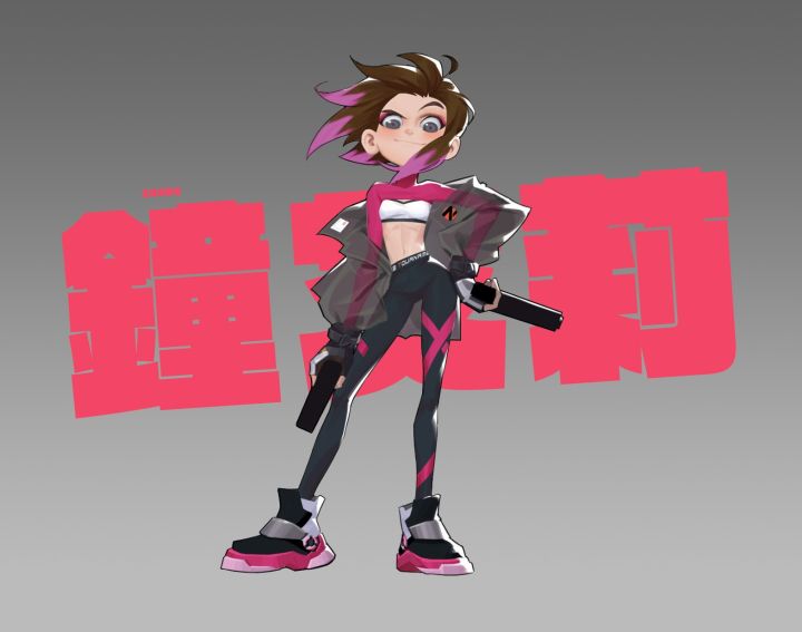 下笔之前我想,如果用一句话描述钟艾莉的基础设定,会是什么呢?——在动感地带奔赴梦想。凌厉线条外包裹着流淌科技曲线的时尚外套,嘴角一抹上扬的傲气笑容,自信而深邃的大眼睛,干净利落的动作,立绘设计稿迭代了一版又一版,现在钟艾莉是这样帅气的女孩。其实,钟艾莉是我们设计的第一个英雄,大家对她的期待和关注度都很高,光是找参照就花费许久。最初的最初,我们希望推出一个具有偶像气质的女主角,当时在设计讨论会
