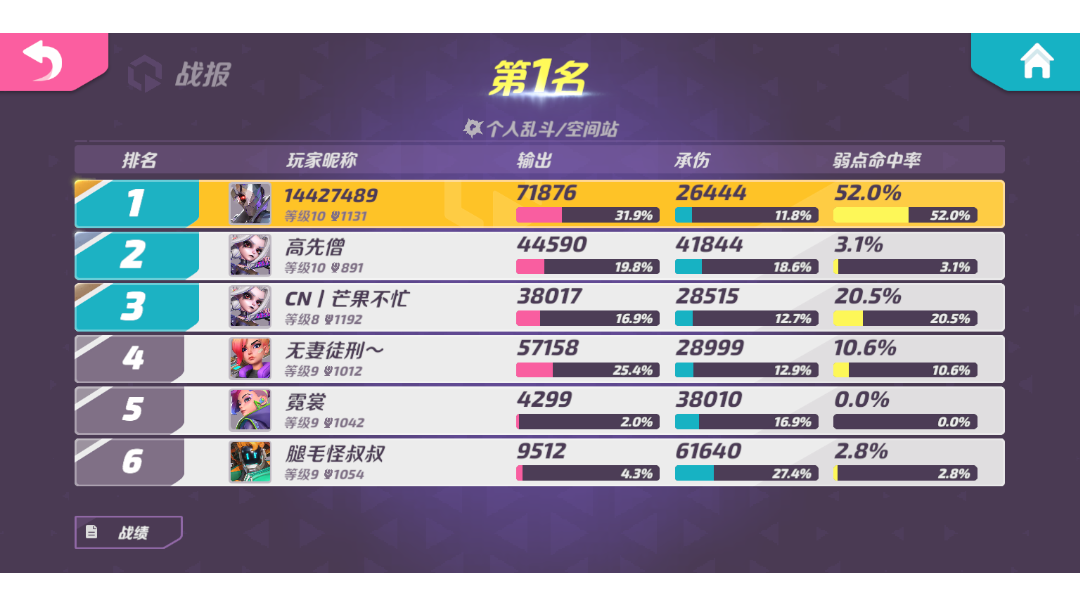乱斗狙击,个人打得算比较满意的一次😛