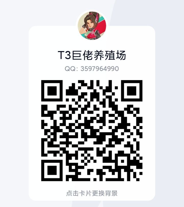 在T3,有这么一个大佬云集,气氛和谐的地方,在这里,你可以找到许多熟悉的面孔,许多单排人连续排过很多次熟悉的名字,都有可能会在里面。还在等什么呢,赶快来一起开黑吧!进群要求(通过后请修改昵称为游戏名,可不带战队前缀,其他说明后接括号表示即可):①总杯数超过1万②3个及以上的千杯英雄③至少有1个满荣誉英雄满足上述三条中的任意一条,然后加上审核员的QQ(下面的二维码)经过审核员审核完毕后,审