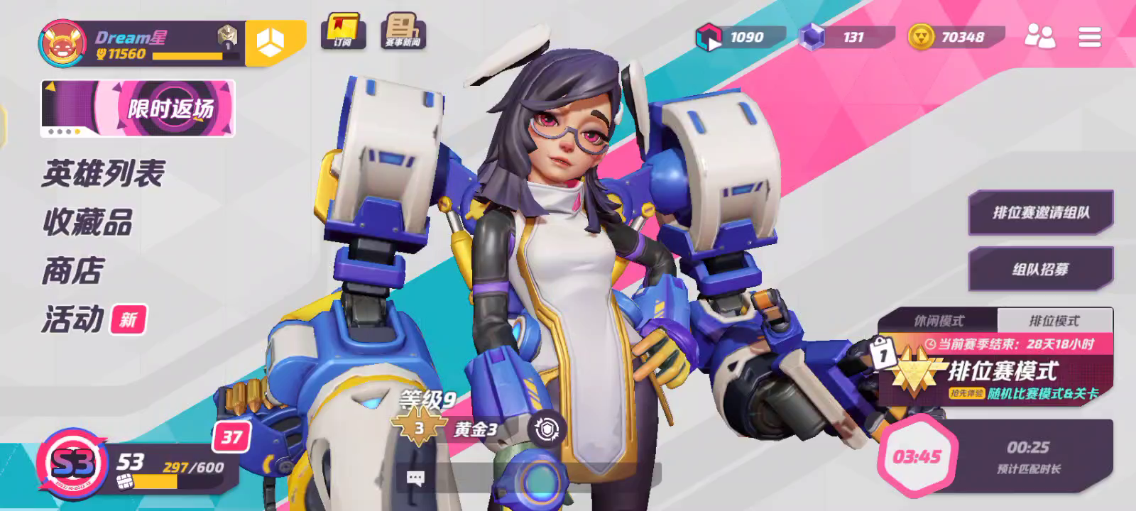 我就一小小的黄金段位排四五分钟都排不到人!后面还有铂金段,好难啊,排不到人,怎么上去啊!