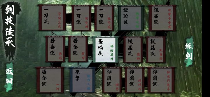 新手教学只能点这个,看完了也不让点练剑,其他的也都没解锁,练剑也进不去