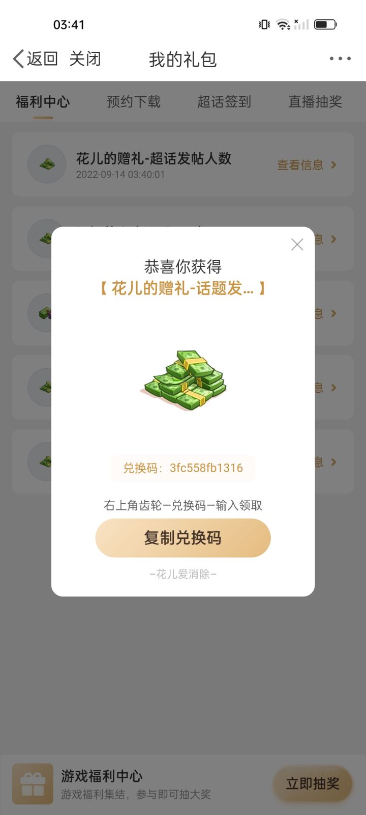 #花儿爱消除 兑换码bb77abeca314bb774c4a708e