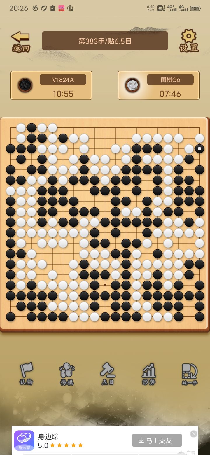 1、我悔棋后,本来电脑打劫后,我不能打劫,看完广告就能打劫了,然后就给AI整不会了,卡住了2、也是一个打劫的bug,忘记截图了,我打劫后,想把眼填起来,以免AI下个回合打回去,有时候不让填