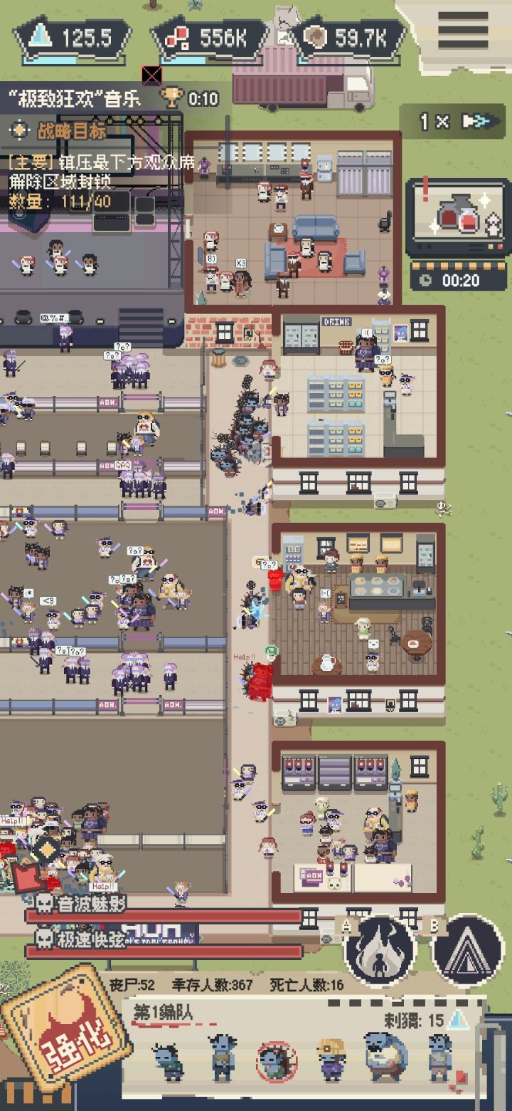 一直选择刺猬,开局放两边,直接清除中层和上层敌人。然后一边攒能量一边放远程清理下方。等到下方清理接近五十的时候,在猫出现的位置提前放远程。直接秒出现这个界面之后已经可以放丧尸了,在台下放远程,秒了她!最后五秒打两个boss,我感觉已经是最快的方法了。有更快的欢迎一起讨论