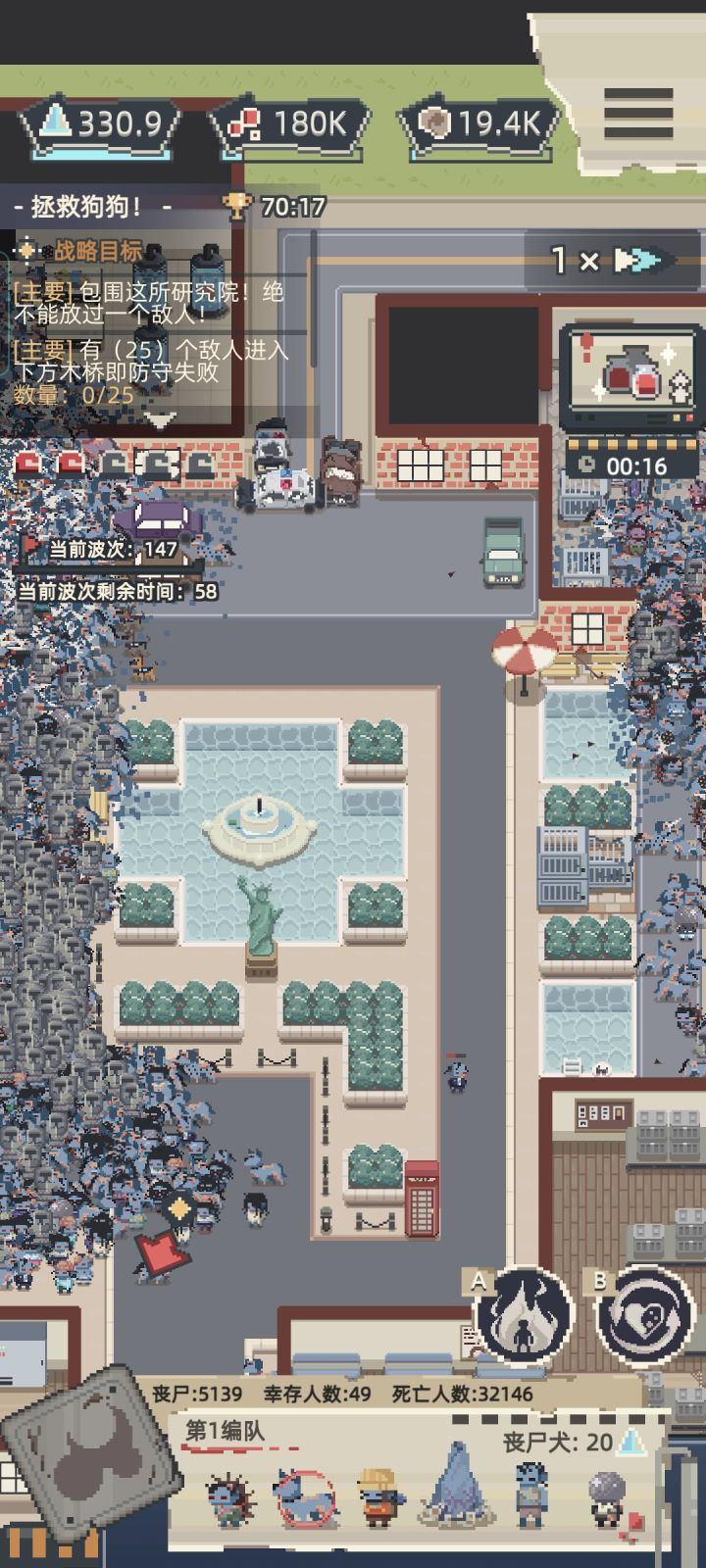 地图解锁完了的话,血液不够,脑子不够,就去“极致狂欢”音乐节这个关卡,里面有370左右的人,可以快速收集到血液,我的储存量是1.2M,每过关一次,给300k左右,脑子55k-60k左右。金币不够可以去汽车旅馆或大坝上游这两个每过关一次给800金币。