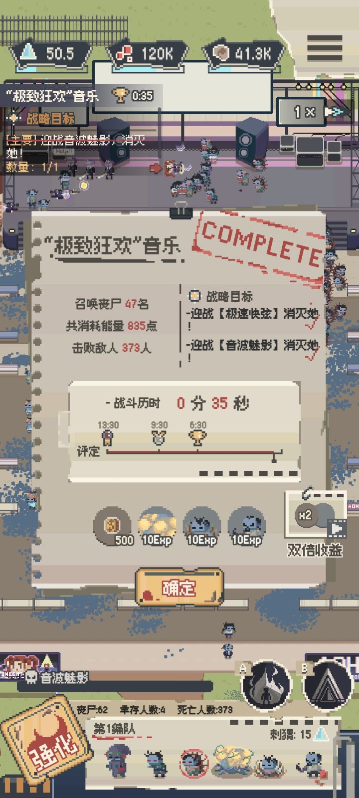 35秒通音乐节 不知道是啥水平 用的几个英雄在5级左右 战力24199 刺猬在围墙外打消耗 追踪者进去拼 技能是2级狂热 1级充能😂