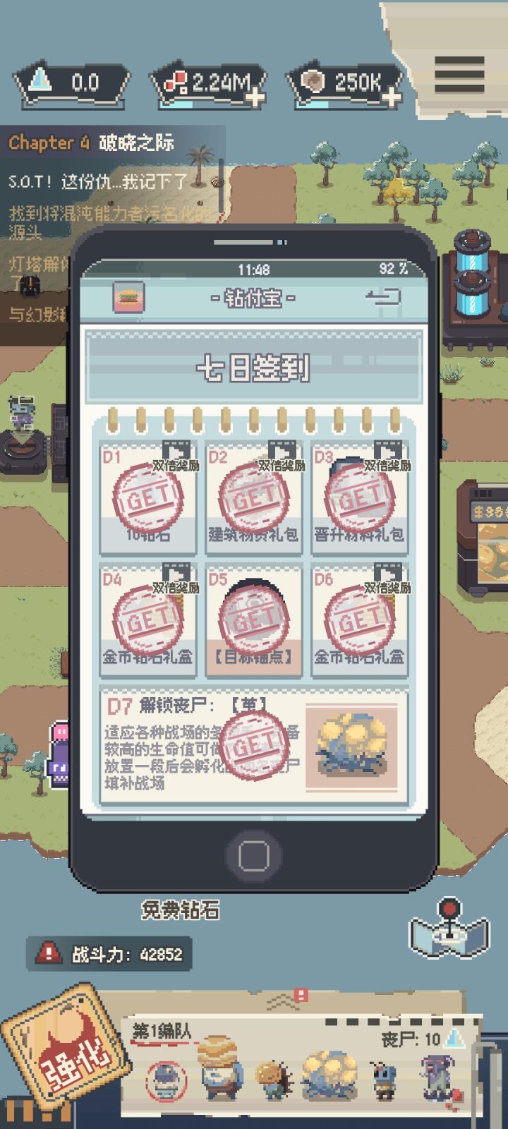 这是我的号,今天刚刚领完7天奖励。然后给大家看下我的资源和强化。这是我玩了7天的成果,每天时间应该不超过20分钟。其实除了升级各个装置的虫子和箱子比较难攒外,脑子和血液其实很好打的。我们只需要打完第二章的最后一关,然后一直刷这关就行。因为这关在前期中期乃至于后期他通关时的杀人数都是比较多的。也就意味着在这关我们可以获得比其他关卡更多的血液和脑子。这样就可以更快的升级能力和各个装置的强化内容。打后