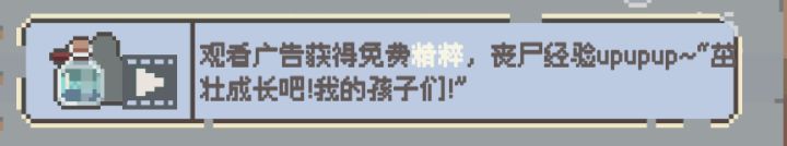 这个好意义不明啊想要得到免费精粹,就要看30~60秒的广告,但是精粹是一次性物品并且只能给一个丧尸加10点经验而如果你用30秒刷一关,你就可以全队获得10经验,并且本局召唤次数多的丧尸还能得到额外经验相比之下根本没人会选择看广告拿精粹吧