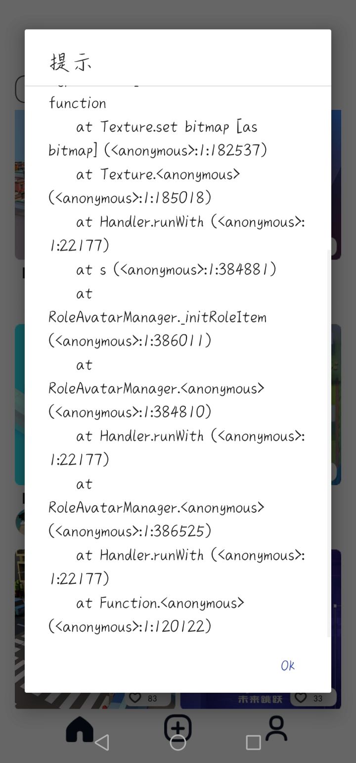 请官方注意!有程序异常抛出!是在我修改完形象之后回到主页面出现的