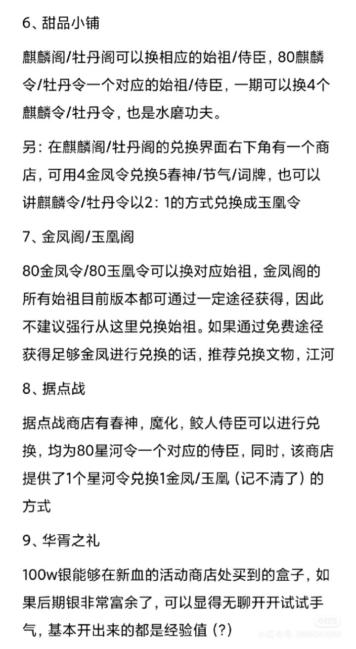 #青鸾繁华录#萌新扣扣嗖嗖玩法心得(适用0氪/中低氪金玩家,个人看法,仅供参考)可能有些方面会有所遗漏【战力党/图鉴党】 1、银子方面后期缺银子,尽量不要用于(新血期间的银子礼包)不值得。Ps:银子富裕时,背包里的金叶子/征战速战令道具不要使用,等没银子时再使用(此道具是根据当前挂机关卡获得对应额)2、 店铺物资兑换①店铺→杂货→材料(每日兑换)兑换:阵营碎片(红色)/玉笏(记忆